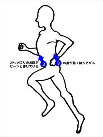 しかし、現役を退いた今はその感覚がどういったものだったのかを思い出すことが大変です。体と神経を毎日の練習で研ぎすましていたころに比べ、年齢を重ねるごとに筋力も落ち関節の可動域も減少していくので感覚が鈍っています。それを打破すべく、昔みたいなパフォーマンスはできなくとも現状で最大限に体を追い込んでいくことにより昔の記憶をよみがえらしています。ふとしたした瞬間に、「そうだ、こんなこと感じてた」なんて思うことが多々あるのです。しかしその感覚を思い出したとしても、市民ランナーに伝えることはとても難しいことです。それでも伝わるよう努力します。なぜなら最初にも述べたように、力まずにスピードを出せて楽に体が前へ進み、脚に負担がかからず効率よく動けるようになるからです。よい感覚はよいフォームをつくります。よいフォームはよい筋肉をつくります。これが逆だと悪い感覚は悪いフォームをつくり悪い筋肉をつくっていくことになります。疲労が抜けなかったり怪我ばかり繰り返している人はここの改善が必要かもしれませんね。そもそも悪い感覚なんて意識もないかもしれません。そこで、ちょっとした意識のお話をしたいと思います。